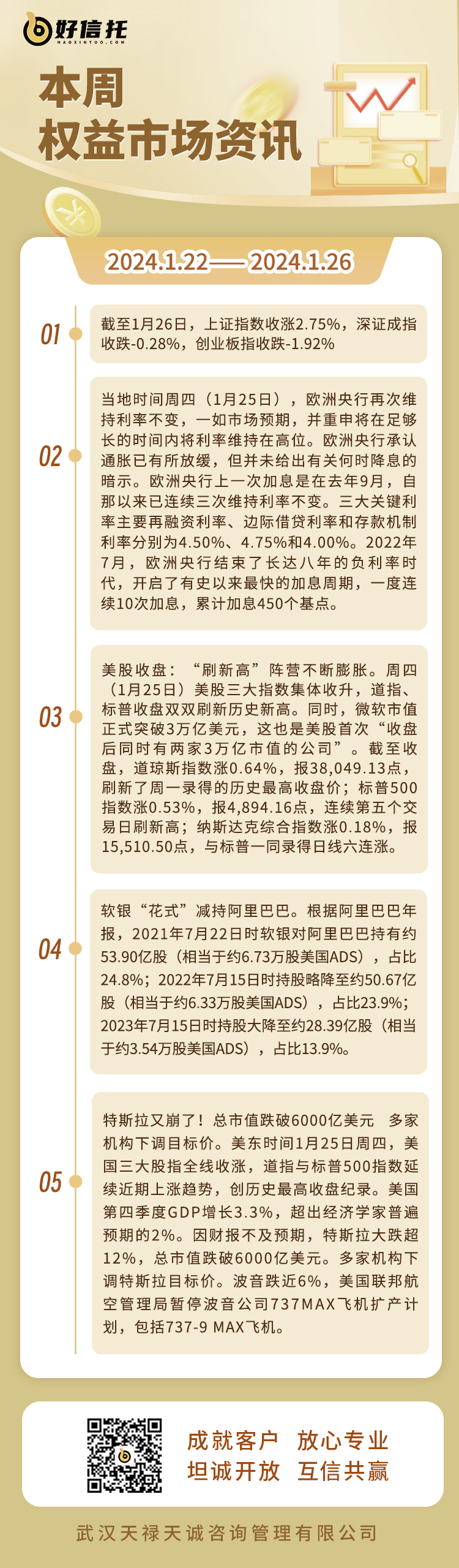 2、香港资本市场未来三年发展蓝图公布。香港证监会发布了三年(2024至2026年)策略重点,阐述其发展香港证券市场、应对风险及保障投资者的方针。未来三年,香港证监会将竭力从四个重点来推动:维持市场韧力,减轻对市场的严重损害;提升香港资本市场的全球竞争力和吸引力;以科技和ESG(即环境、社会及管治)引领金融市场转型;及提高机构韧力及营运效率。